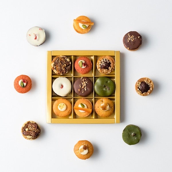 可愛い9種のプチケーキセット。みずみずしい果物の味わいをぎゅっと閉じ込めました。女性が口元を汚さずに食べられるひとくちサイズで、職場のおやつ時間にもぴったりです。