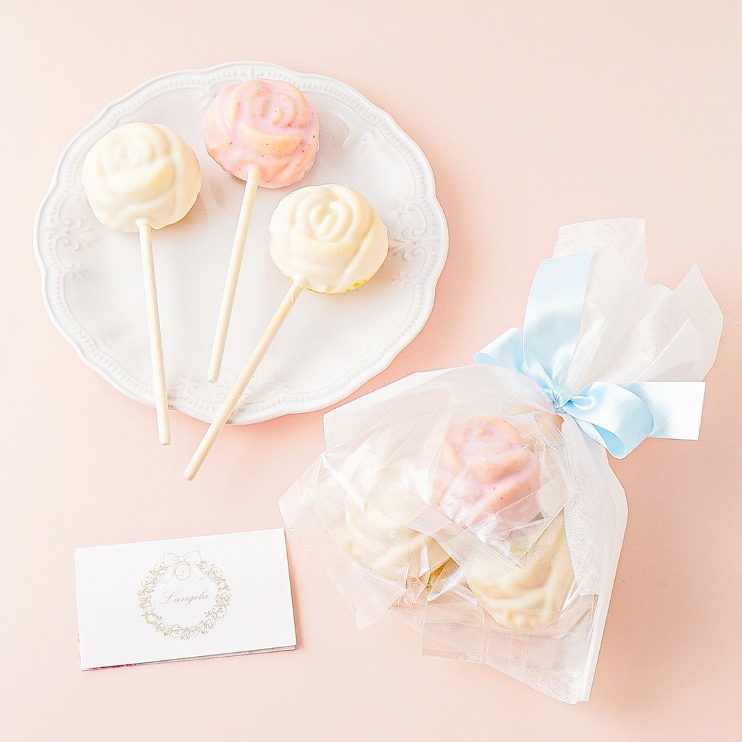 バラのマドレーヌ専門店「ランジェラ」が作るホワイトデー限定スイーツ。プレーンのバラのマドレーヌにカカオバリーのホワイトチョコレートとストロベリーチョコレートをコーティングしています。ミニブーケをイメージしたラッピングもとてもキュート。