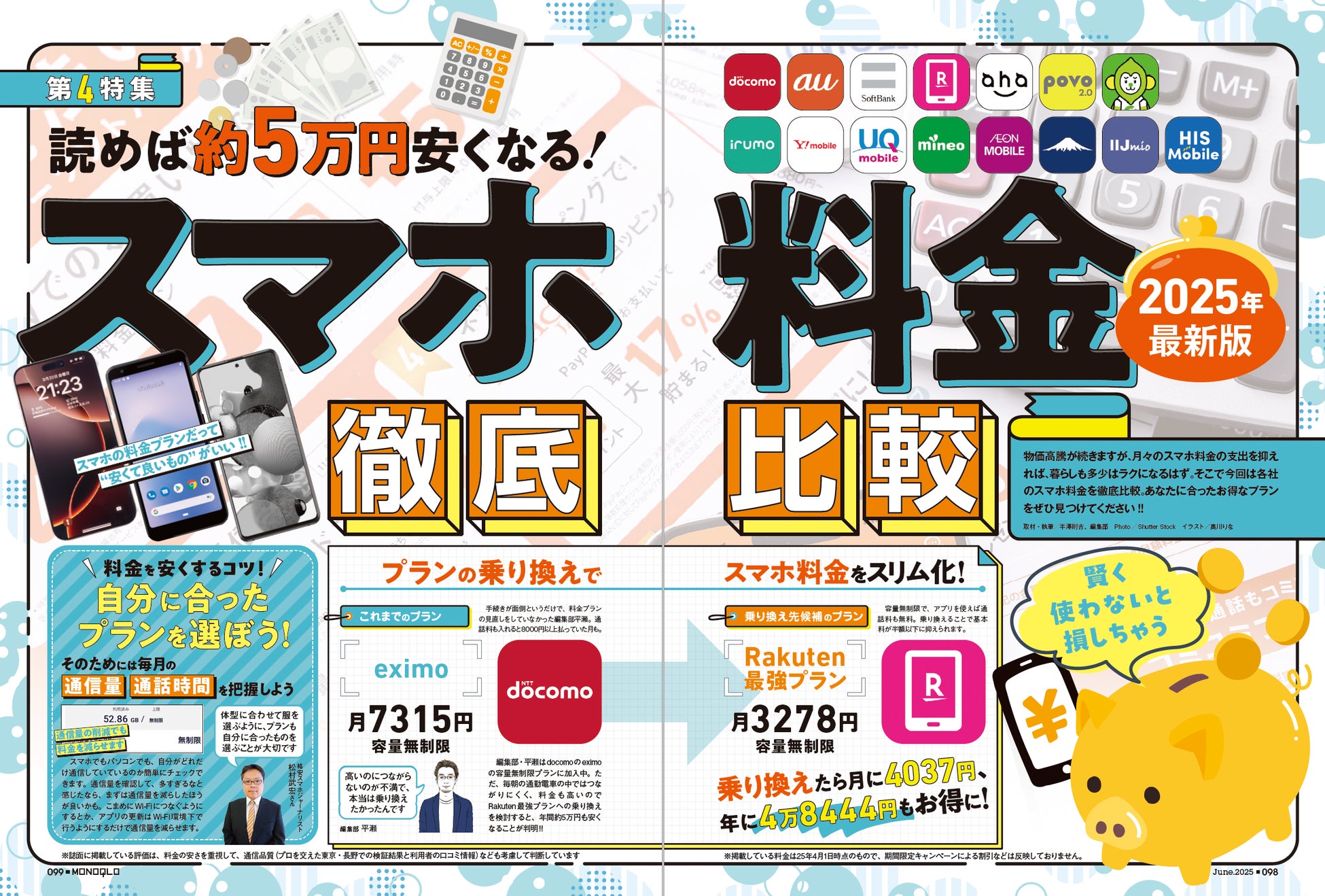 今春の「iPhone買い替え完全ガイド」を大発表! 新生活の買い物は「安くて良いモノ」でコスパ良くスタート!!【MONOQLO2025年6月号】