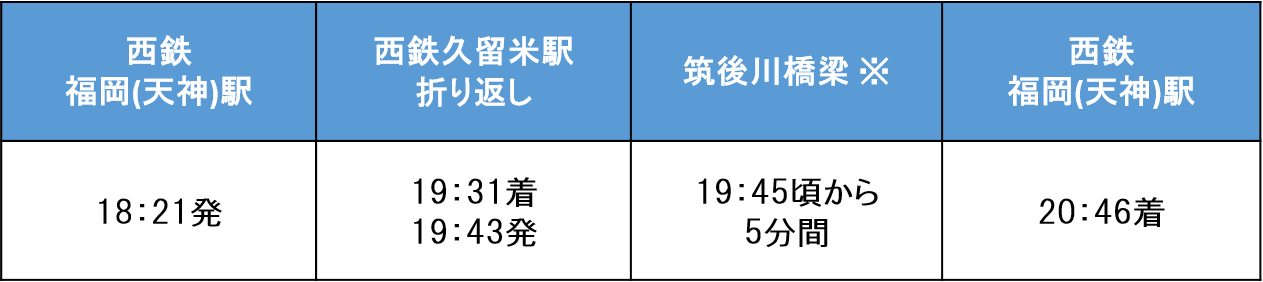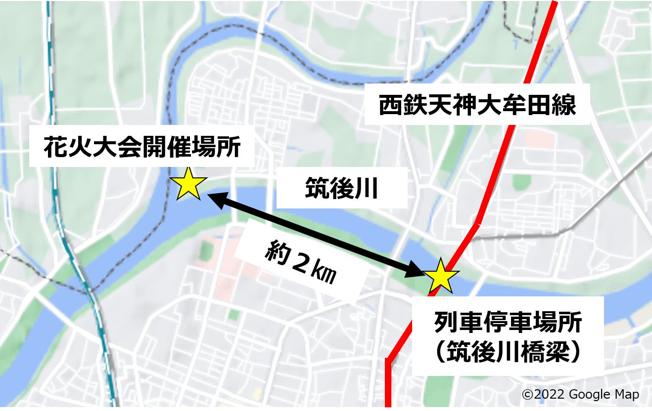 西日本鉄道㈱では地域を味わう旅列車「THE RAIL KITCHEN CHIKUGO」において、2022年8月5日(金)に開催される筑後川花火大会にあわせ、列車に乗車したまま筑後川橋梁から花火を鑑賞できるスペシャルコースを運行いたします。