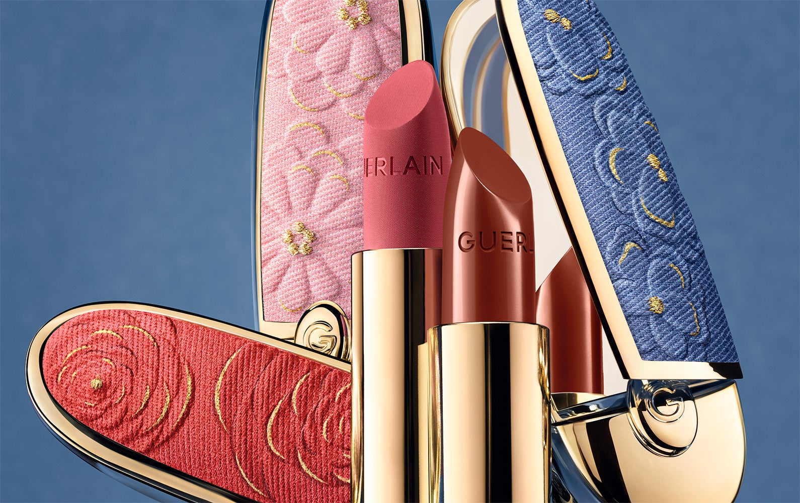 素材の錬金術師とも称されるゲランは、「Nona Source」のデニムを美しく昇華させ、ダブルミラー付きのカスタマイズ可能な〈ルージュ ジェ ケース〉を彩りました。染色、エンボス加工、刺繍、そしてゴールドの箔押しプリント。この4つの仕上げ工程により、デニムのデッドストック素材は、洗練されたリップスティック ケースへと生まれ変わりました。3種の〈ルージュ ジェ ケース〉が、メゾンが愛してやまない花々の世界へと誘います。