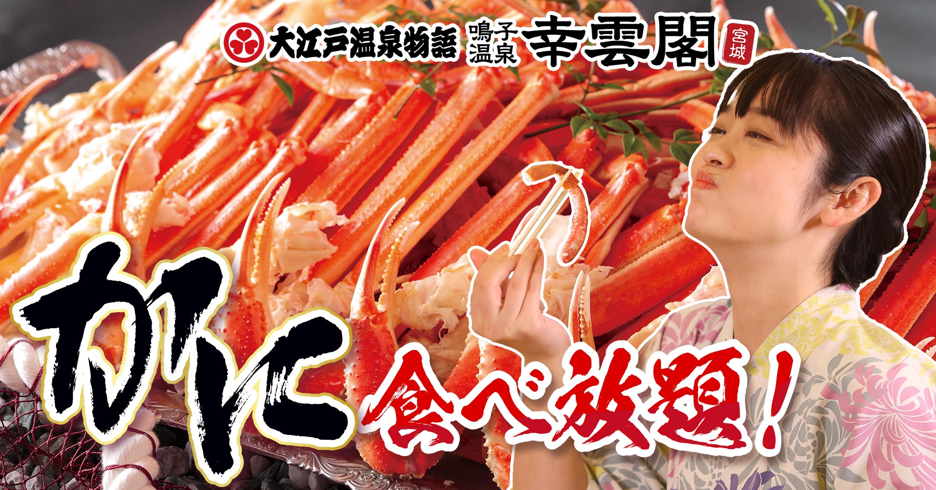 全国旅行支援対象宿、大江戸温泉物語 鳴子温泉 幸雲閣で緊急企画【かに食べ放題】が11月1日スタート!