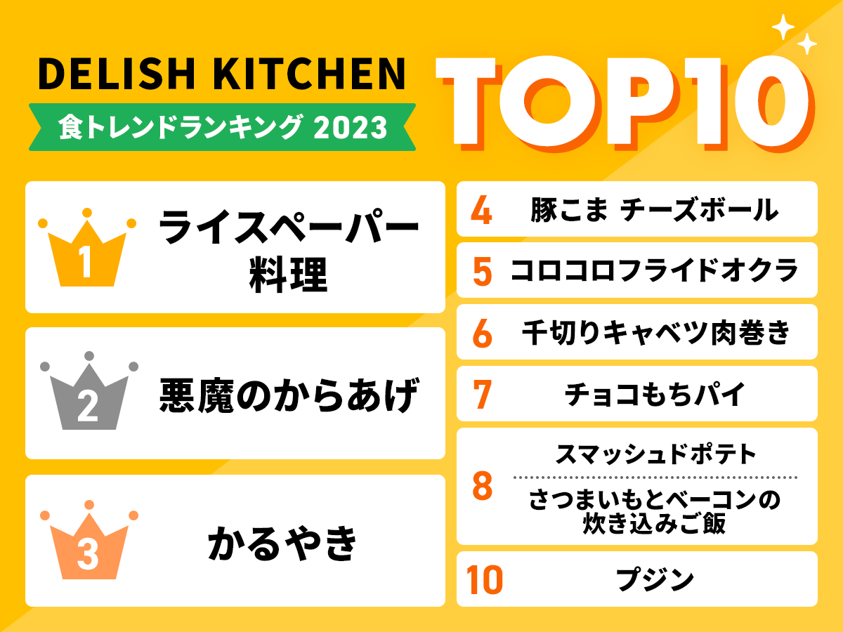 『DELISH KITCHEN』、2023年の「食トレンドランキング」と2024年予測を発表