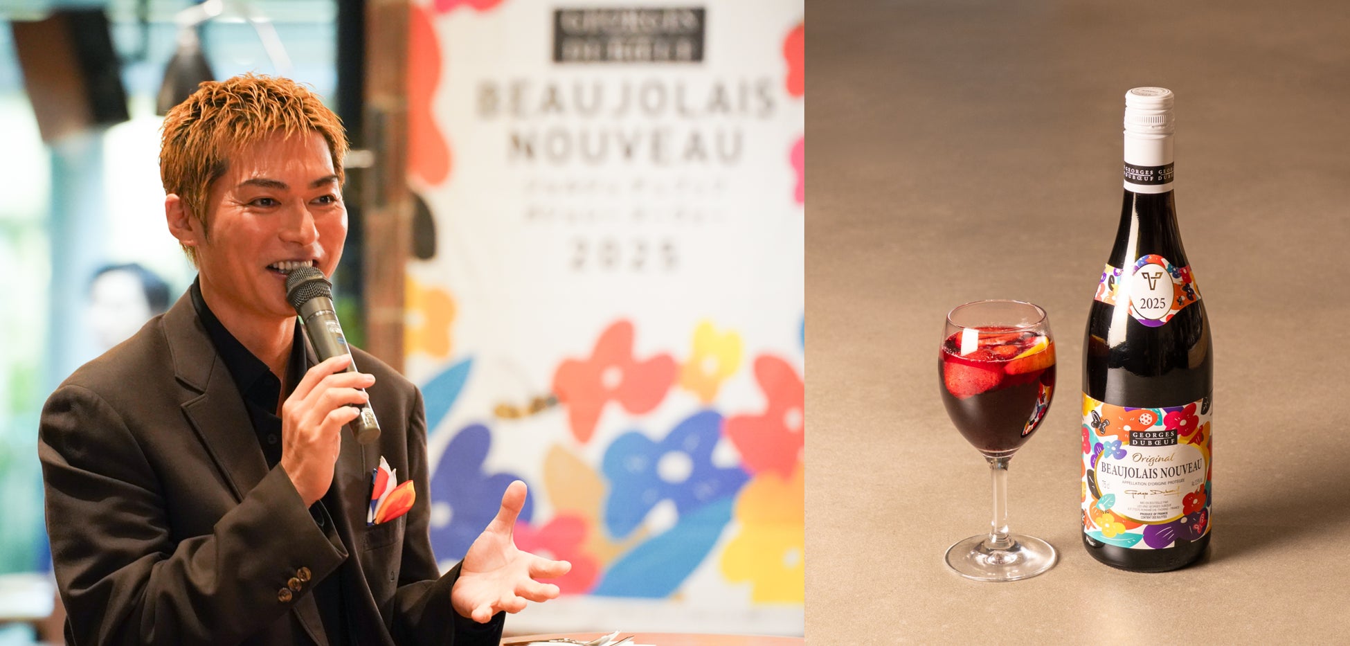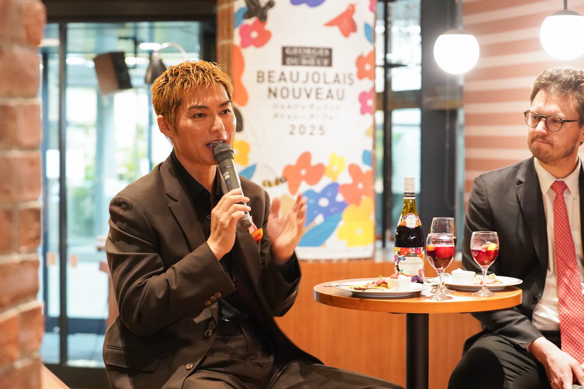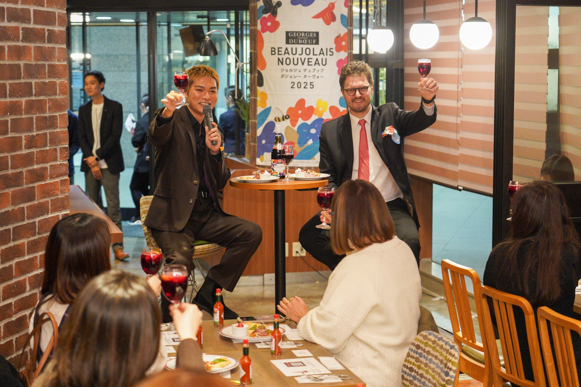 解禁当日の2025年11月20日(木)、PRONTO都内店舗 にて「\PRONTO × EXILE SHOKICHI/2025解禁!ボジョグリアを楽しむ会」を開催いたしました。本イベントは、監修のEXILE SHOKICHI氏と、「ボジョレー・ヌーヴォー」の作り手であるジョルジュ デュブッフ社アドリアン デュブッフ・ラコンブ氏を招き、「ボジョグリア」の魅力やマリアージュフードとの楽しみ方をご紹介する場として開催いたしました。
