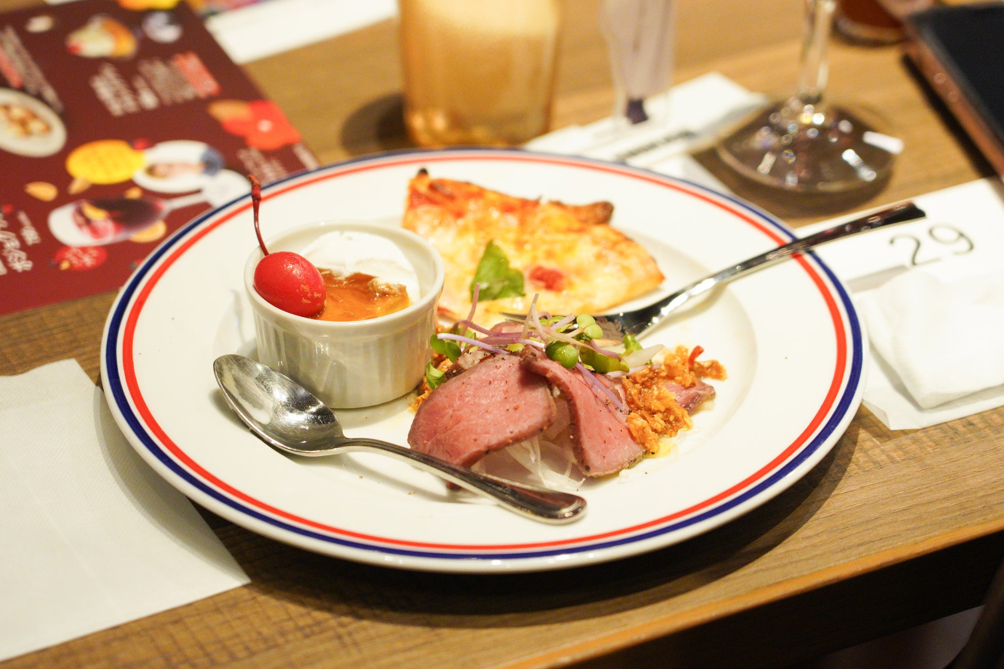 また、選んだ料理とのペアリングについても、「クリスピーマルゲリータピザ」についてはタバスコをかけて「しょっぱい、辛い、甘い」を繰り返して味わうマリアージュをおすすめし、牛肉に造詣の深いSHOKICHI氏にとっては外せないペアリングとして、「“旨赤身”牛ナカニクのカルパッチョ」を紹介。また意外性のある組み合わせとして「かなり固めのクラシックプリン」もセレクトしました。 「どれもボジョグリアのフルーティーさと相性抜群」と自信にあふれた様子で語りました。