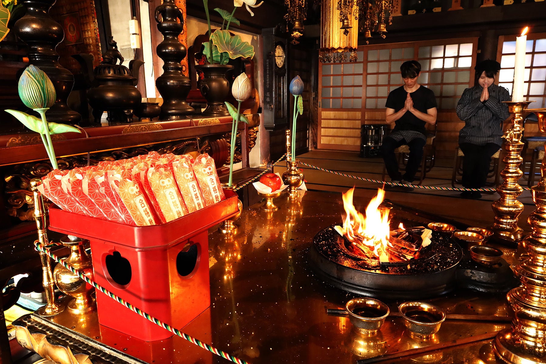 パパブブレ日本1号店である中野店近くの新井薬師梅照院にて、キャンディパフォーマーが受験生の合格を願ってご祈祷を受けました。頑張る受験生を想いながら、心を込めて製造した「合格」キャンディです。