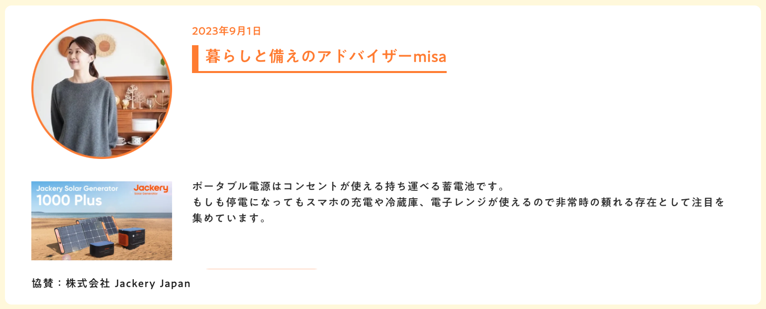 Jackeryが提供するポータブル電源は、コンセントが使える手軽に持ち運べる蓄電池です。もしも停電になってもスマホの充電や電化製品が使えるので非常時の時の頼れる存在として注目を集めています。今回は9月発売の新製品が当たります。