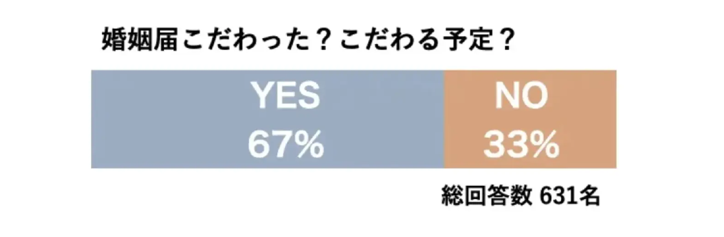 - 全体の67%の女性が「婚姻届」はこだわると回答。