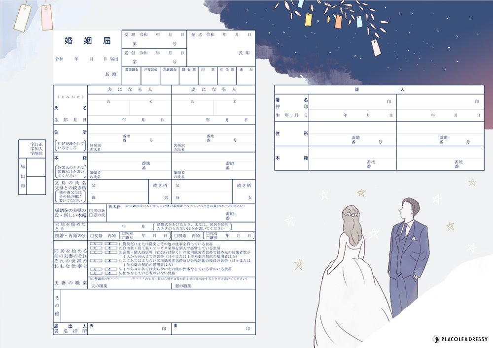 【無料DL】PLACOLE&DRESSYオリジナル 『プラコレ婚姻届』に新デザインが登場!七夕や夏らしい季節に合わせた婚姻届など、5デザイン追加公開しました。