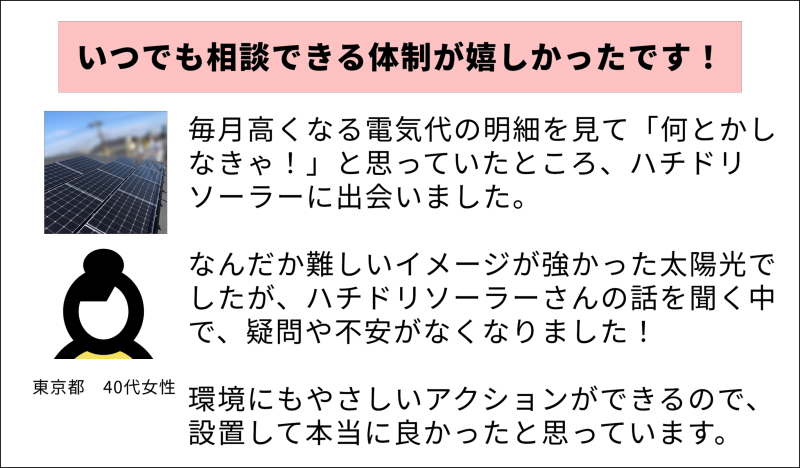 15年の契約期間中はもちろん、契約期間満了後もハチドリソーラーのカスタマーサポートをご利用いただけます。