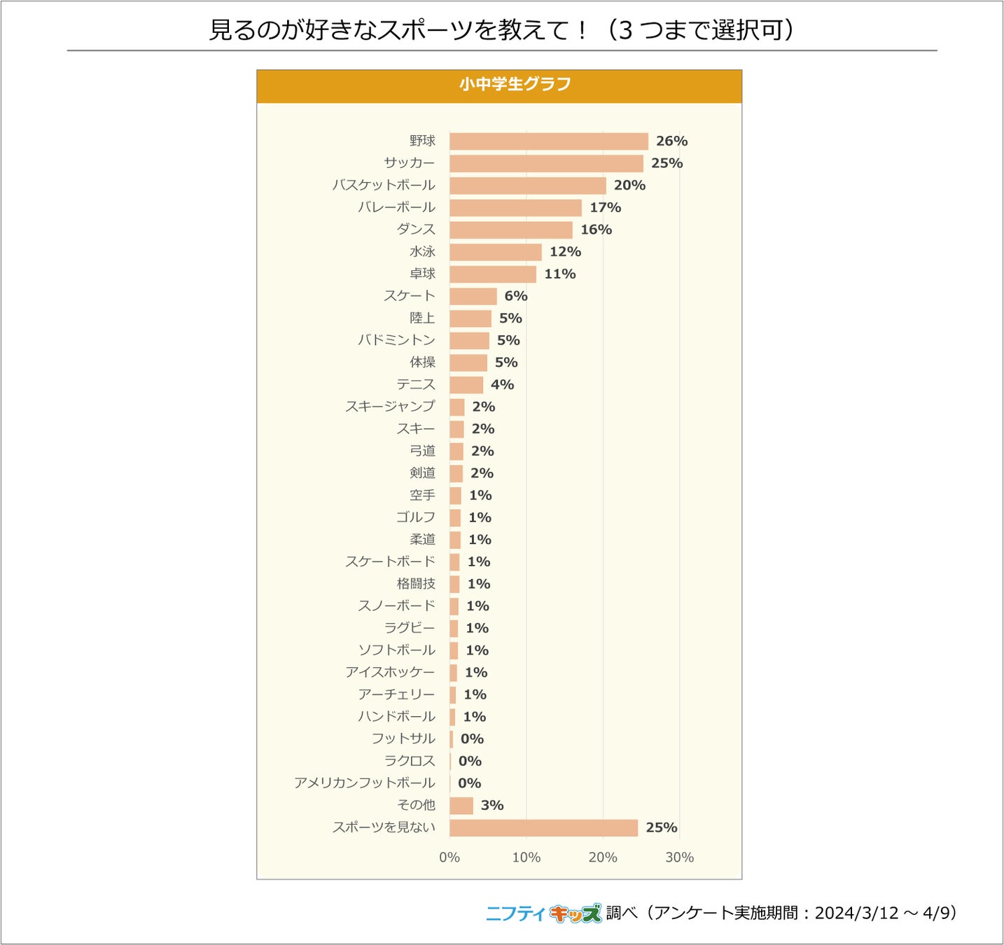 ●見るのが好きなスポーツを教えて!(3つまで選択可)