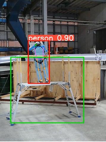 監視カメラに映ったさまざまな建設現場の映像から機材と人物のみを分離して学習し、少量の映像データで検出することが可能です。