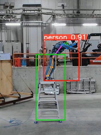 本実証では、室内工事における立馬作業の転倒・転落事故につながる危険行動を本システムの検知対象として、当該作業が行われる複数か所の建設現場に本システムを導入します。実証場所となる建設現場に設置された監視カメラに映る作業の映像をAIクラウドが取得し、転倒・転落事故につながる危険行動を検出します。