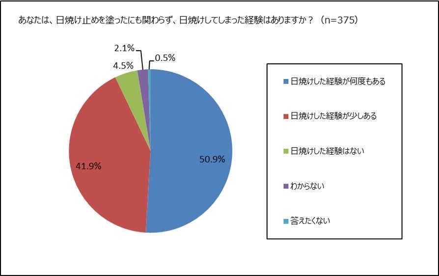 ③日焼け止めを使用していたのに日焼けしてしまったのは9割超。何度も日焼けしてしまったのは5割超。