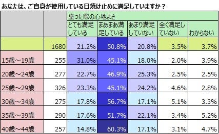 「日焼け止めはスキンケアの一環である」2割超。日焼け止め、若年層の方が前向きで高齢層の方が不満が多い。