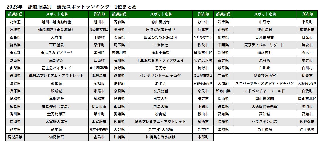 1.『2023目的地検索スポット 総合ランキング』TOP100