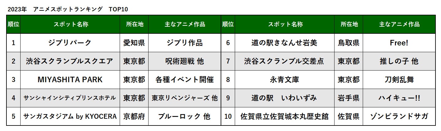 今年も特集ランキングは、アニメの舞台となったスポットに加え、アニメ関連のコラボイベントが開催されたスポットに対象範囲を拡大して集計しました。ナビタイムジャパンが独自に調査・集計しています。