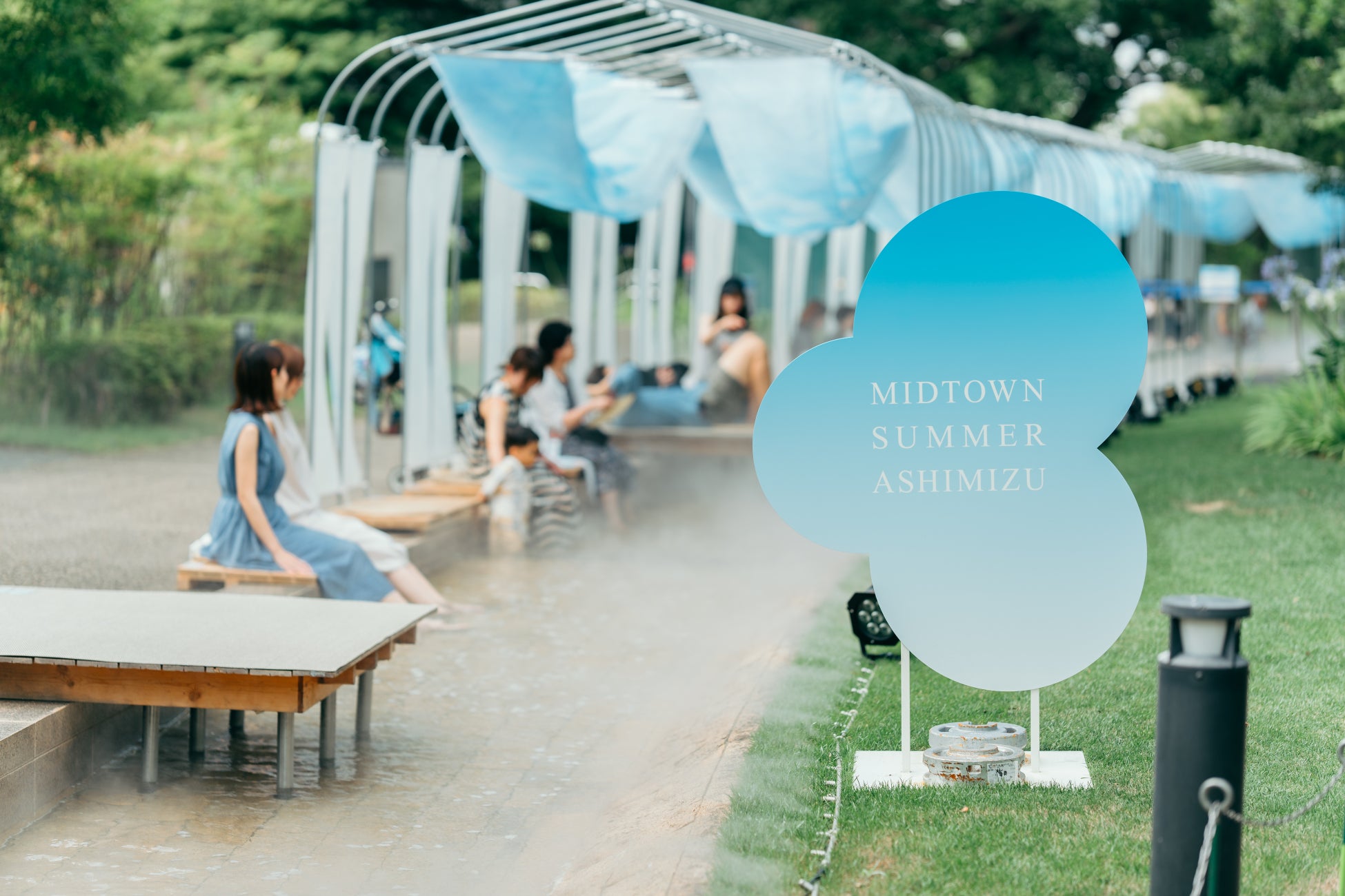 ミッドタウン・ガーデンを流れる小川に足を浸し、都会にいながら夕涼みをご体験いただける人気コンテンツ「ASHIMIZU」が今年も登場。ひんやりとしたミスト(霧)や氷の投入により、さらに涼しさを感じていただけます。昼は木々がつくり出す木漏れ日の中で水面が煌めき、夜は光の演出が加わり幻想的な雰囲気に包まれます。昼夜を通して夏の涼をお楽しみいただけます。