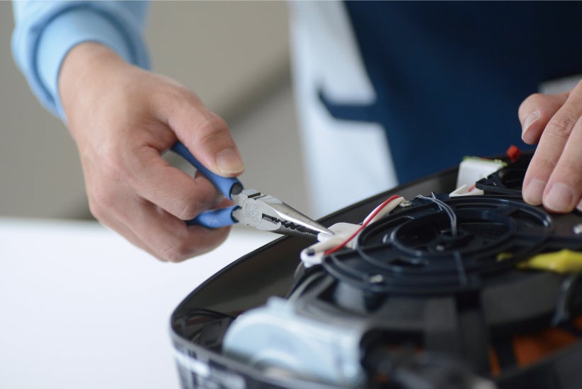 当社では愛着ある家電を長くお使いいただくために、製品の機能を維持するために必要な部品である補修用性能部品について、業界水準より長く、製造が終わってから10年間保有をしております。生産終了後、年数が経過したときに補修用部品の在庫がないために修理ができず、「お気に入りなのに、手放さないといけない」という残念そうなお客様の声を一つでも減らしたいという想いから始まった取り組みです。「買い替え」だけでなく「修理」や「部品交換」といった選択肢を広げることで、お客様のご期待に応えたいと考えています。