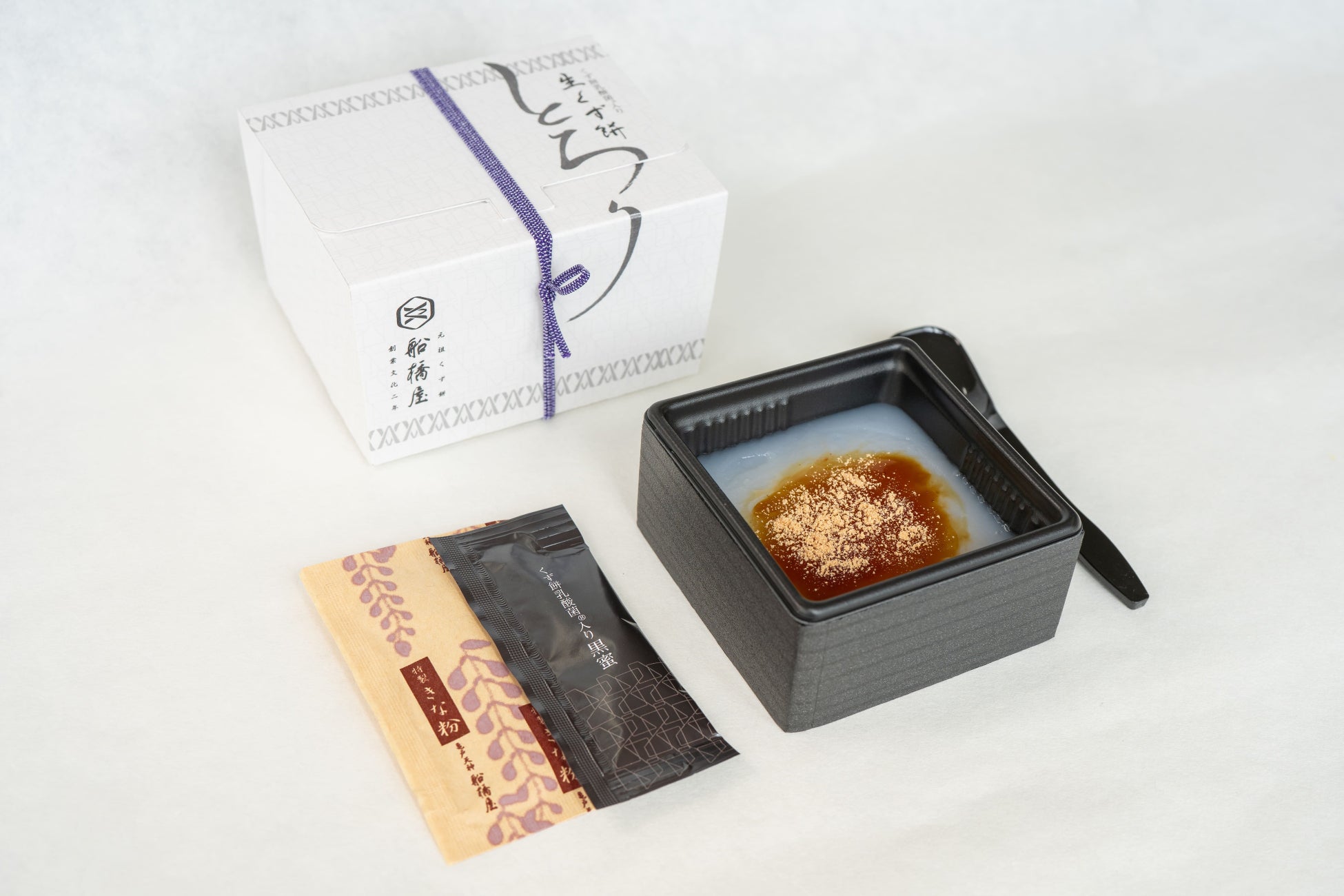 1805年江戸時代に創業し、2024年で創業219年目を迎えた関東風のくず餅屋です。船橋屋のくず餅は、「小麦澱粉」を450日乳酸発酵させて蒸し上げる【和菓子唯一の発酵食品】。長期間乳酸発酵させているからこそ、独特の歯ごたえと弾力が生み出されます。また、自然のものをそのままお客様にお届けしたいという想いから、保存料を使わない自然な製法にこだわり続けています。発酵食品であり、無添加である伝統和菓子が今、健康を意識する人々から注目されております。