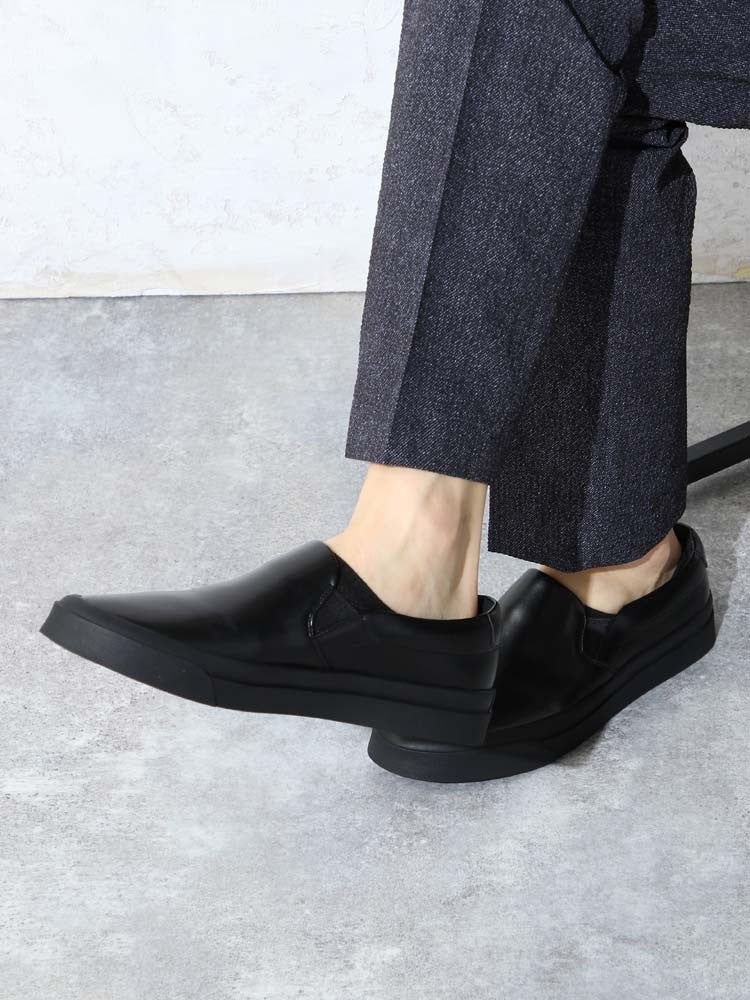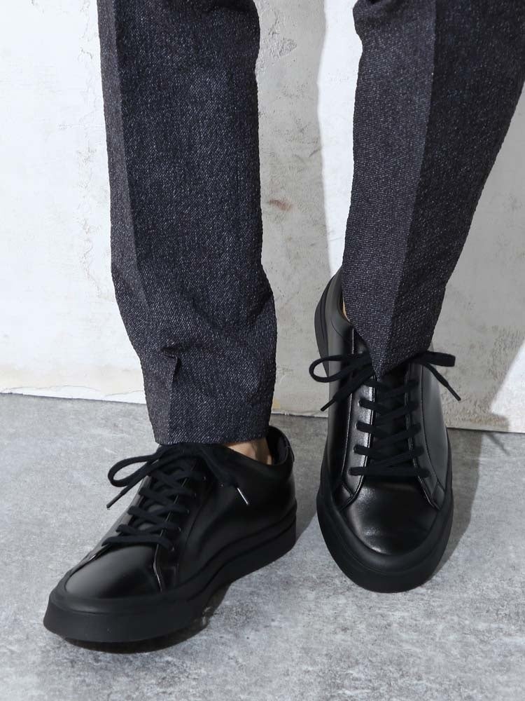 ラフなファッションに馴染むスニーカータイプのシューズは装飾などを控えた、単色のシンプルなデザインにすることでビジネスウェアとも高相性で、毎日のコーディネートに着回し可能。