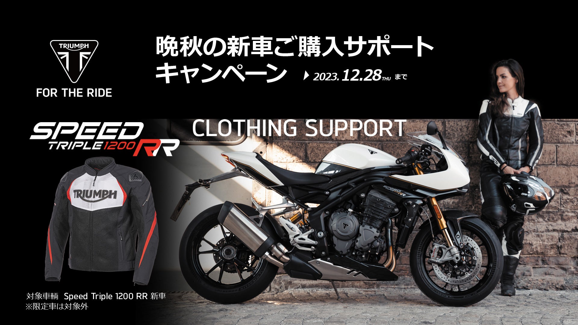 Speed Triple 1200 RR の新車をご購入された方を対象に5万円分(税別)のクロージング(衣類)をプレゼント!