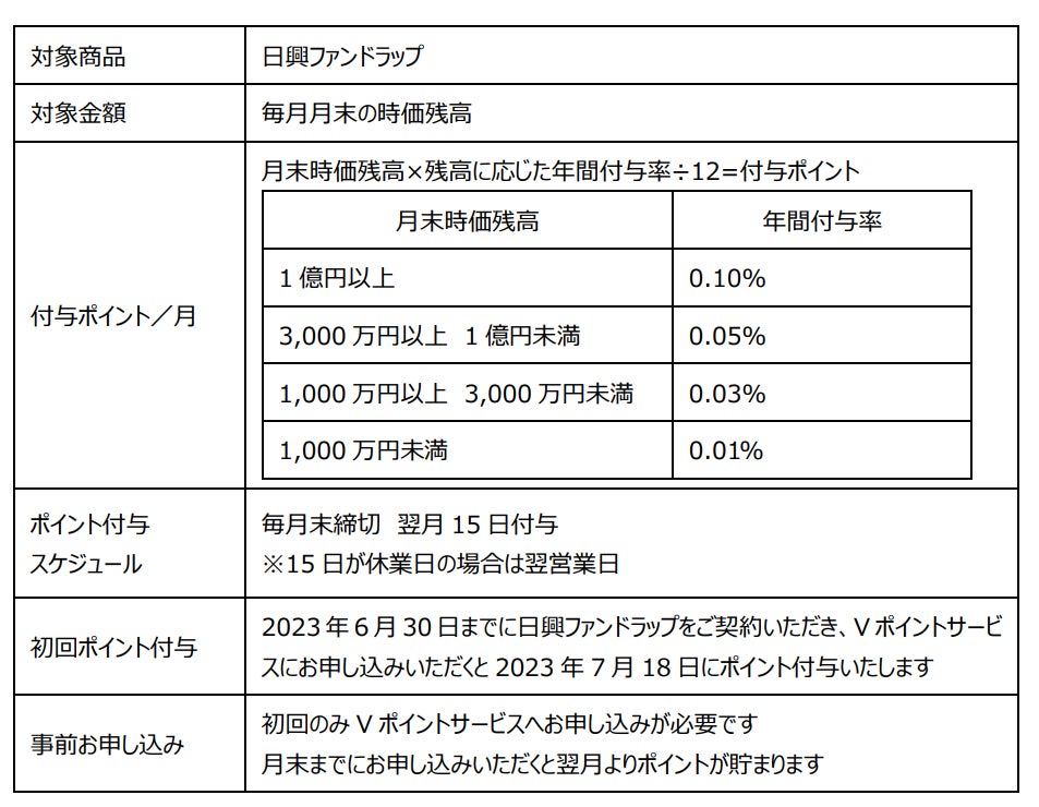 ※日興ファンドラップのご契約でVポイントを貯めるには、Vポイントサービスへのお申し込みが必要となります。