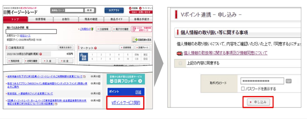 日興イージートレードから三井住友カードのサイトへ遷移し、Vポイントをまとめることができます。