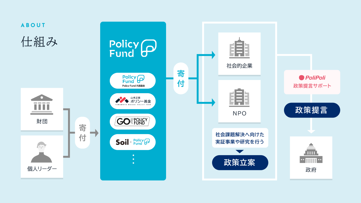 『Policy Fund』は政策を軸にした、社会課題解決を加速するための寄付基金です。