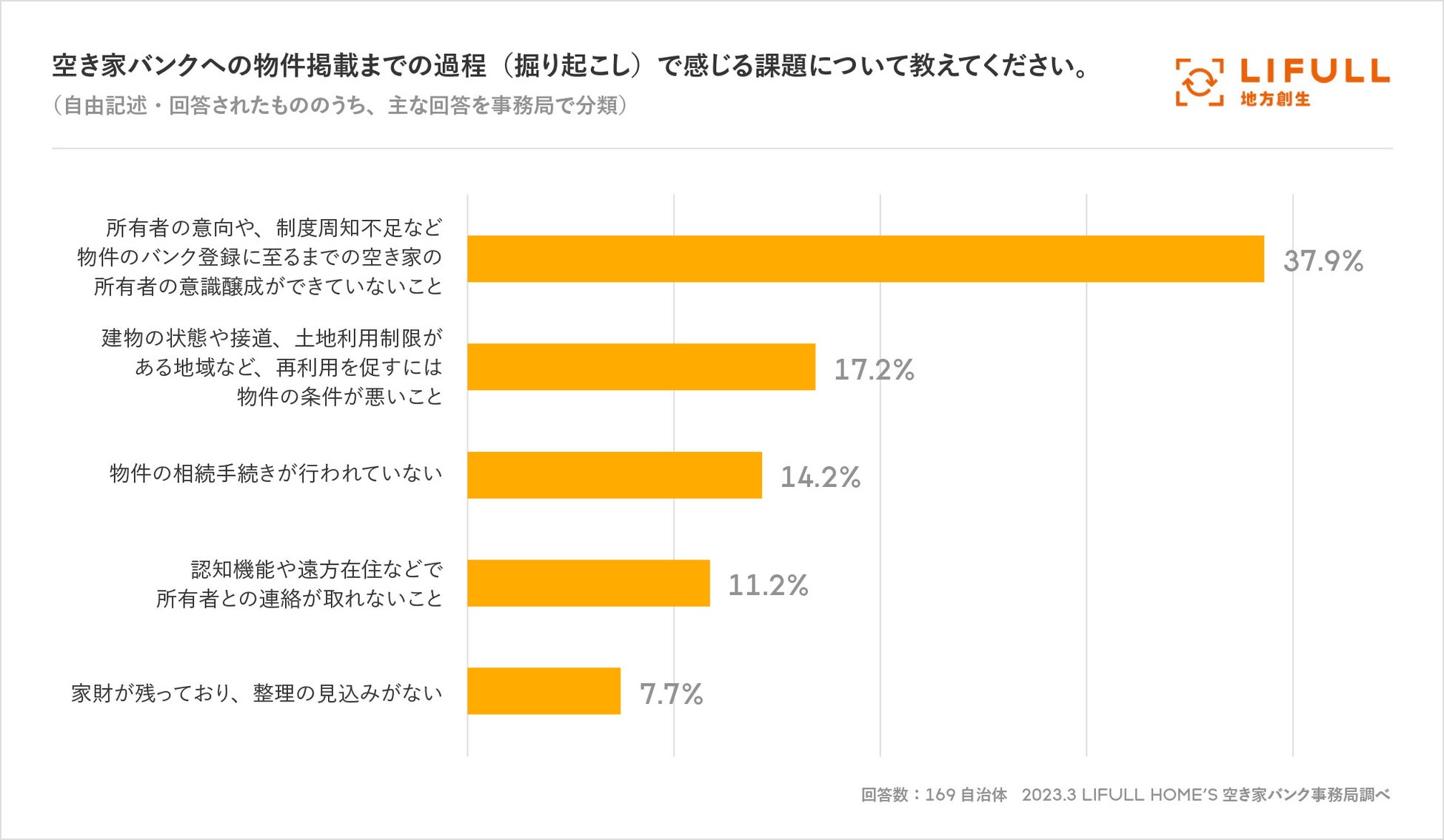 事業を通して社会課題の解決に取り組む株式会社LIFULL(ライフル)(以下LIFULL、本社:東京都千代田区、代表取締役社長:井上高志、東証プライム:2120)は、令和4年度(2022年度)、国土交通省の「住宅市場を活用した空き家対策モデル事業(以下「本モデル事業」)に採択され、全国版空き家バンクサイトを運営する事業者として、全国の自治体担当者が感じている「空き家対策業務の課題」等を調査し、自治体の空き家情報の掘り起こしや掲載のサポートに取り組みました。