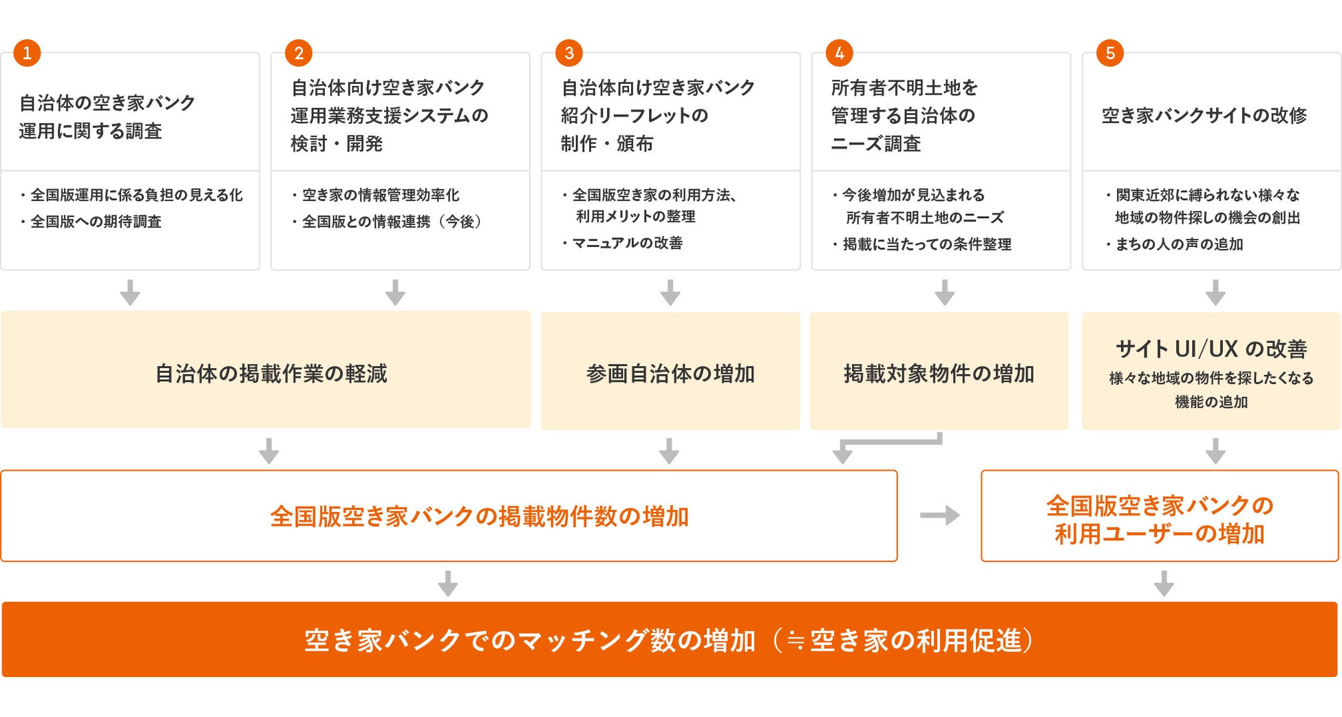 ・担当者が感じる課題や、減らしたい業務についての調査。空き家バンクの改修ニーズやサービス改善に向けた調査。