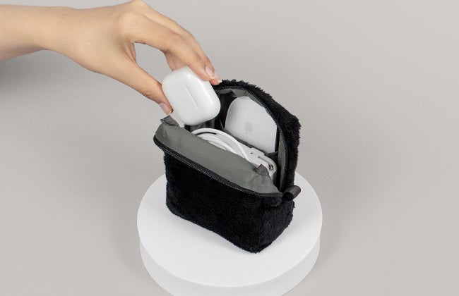 広いメイン収納と小さいポケットで、ガジェットからアクセサリーまでマルチに収納出来ます。