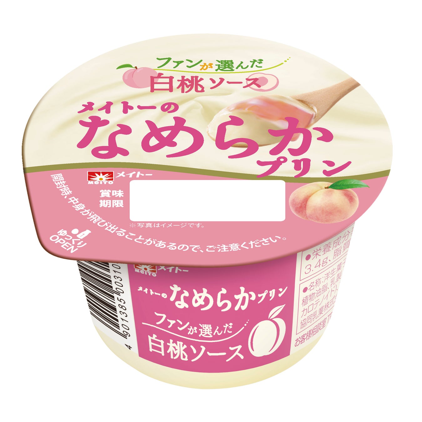 なめらかな食感と濃厚な味わいで幅広い年代の方からご好評をいただいている「メイトーのなめらかプリン」より、なめらかプリンファンが選んだ待望の新フレーバー「白桃ソース」を是非お試しください。