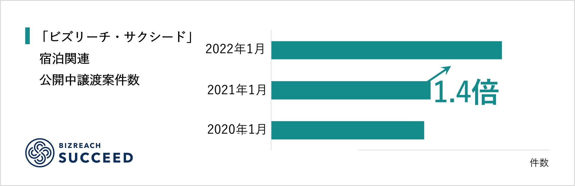 コロナ禍の影響を受け、宿泊関連の譲渡案件数が前年同月比1.4倍(事業承継M&Aプラットフォーム「ビズリーチ・サクシード」調べ)