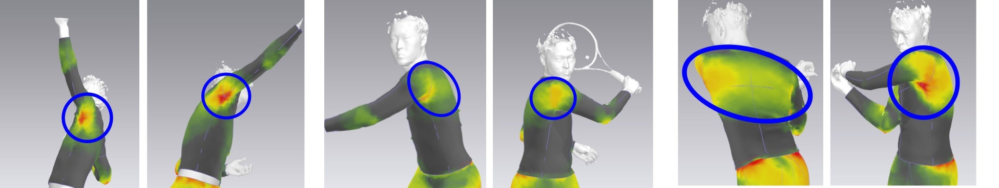 テニスの動作時の上衣服のつっぱりによるストレス範囲を分析