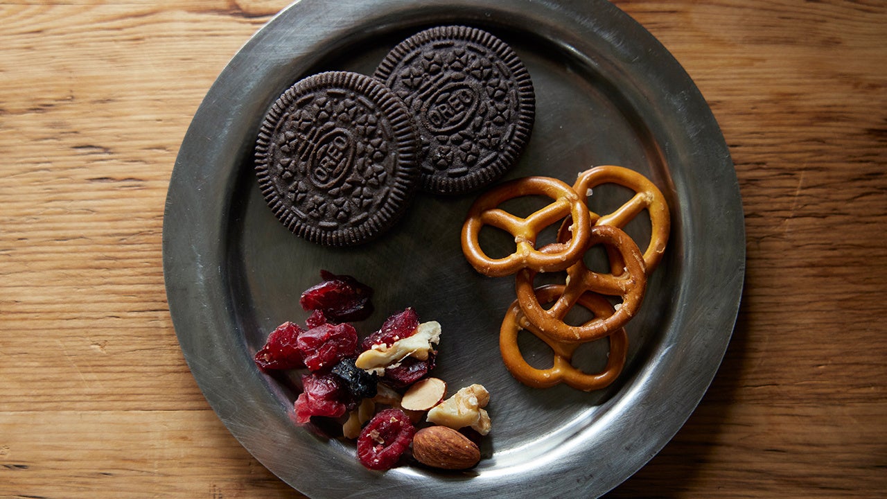 トッピングには、カリッとした食感と塩味がアクセントのプレッツェルや甘酸っぱいドライフルーツ、クッキーにナッツ。一緒に食べるトッピングによって味わいが変わるのもたのしいポイントです。