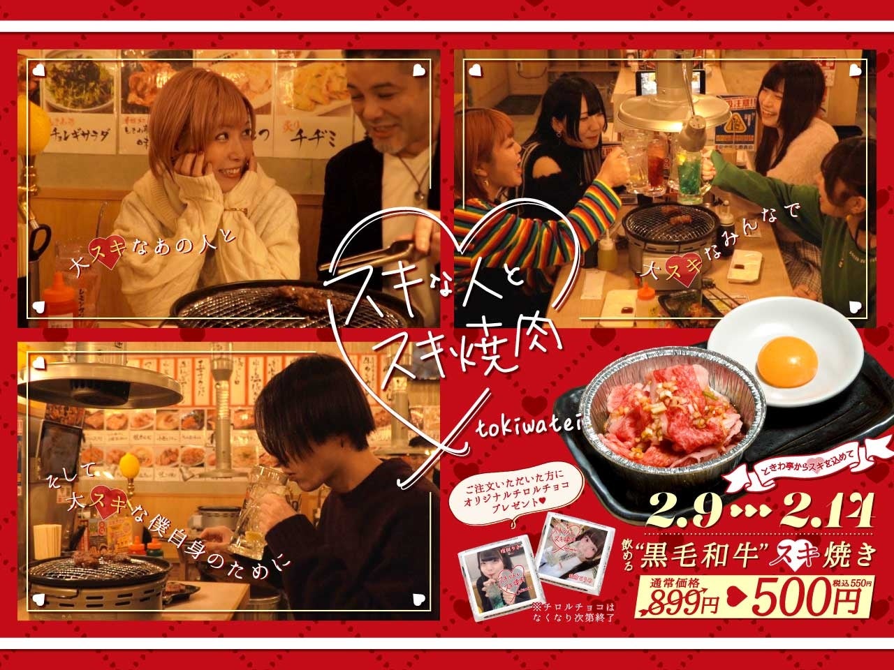 「0秒レモンサワー®仙台ホルモン焼肉酒場 ときわ亭」『ときわ亭 スキな人とスキ焼肉♡』キャンペーン2月9日(日)〜2月14日(金)期間限定で開催