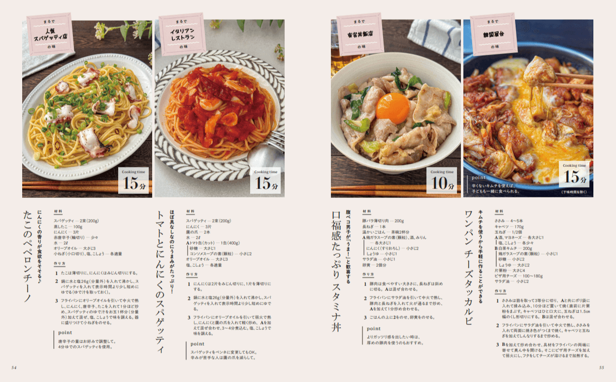 「あの有名店の味をおうちで再現したい!」という願いを叶える、ワクワクが詰まったパートです。チーズがとろける「ミラノ風ドリア」や、大人も子どもも大好きな「ハンバーグ」まで。特別な日の食卓もおもてなしも、この一冊があればもう迷う必要はありません。