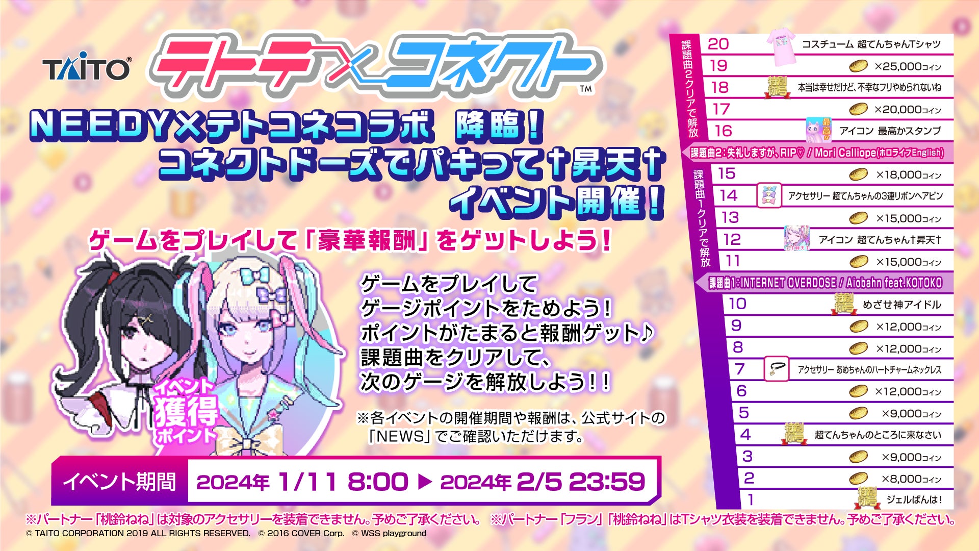 アーケード用リズムアクションゲーム『テトテコネクト』1月11日(木)より『NEEDY GIRL OVERDOSE』とコラボ!期間限定イベント開催やテーマソングを収録!