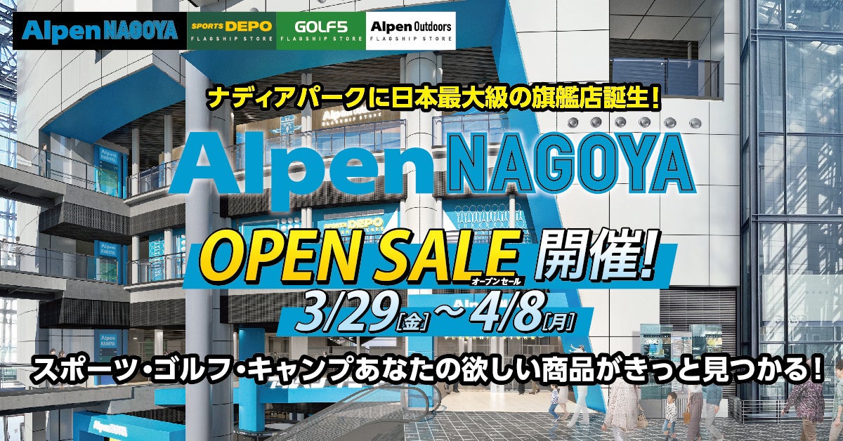 3月29日(金)いよいよオープンの大型旗艦店「Alpen NAGOYA」にて4月8日(月)まで11日間限定「Alpen NAGOYA オープンセール」開催!