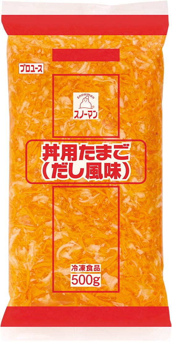 新商品の「スノーマン 丼用たまご(だし風味)」は、昆布だしとかつお節だしのやさしい味わいの関西風で、シズル感と鮮やかな色調が特徴です。解凍してかけるだけで、たれがごはんに染み込み過ぎず、程よい照りが出せ、卵でとじたような見た目になります。ラインアップには、東日本で好まれる醤油仕立ての「スノーマン 丼用たまご」があります。