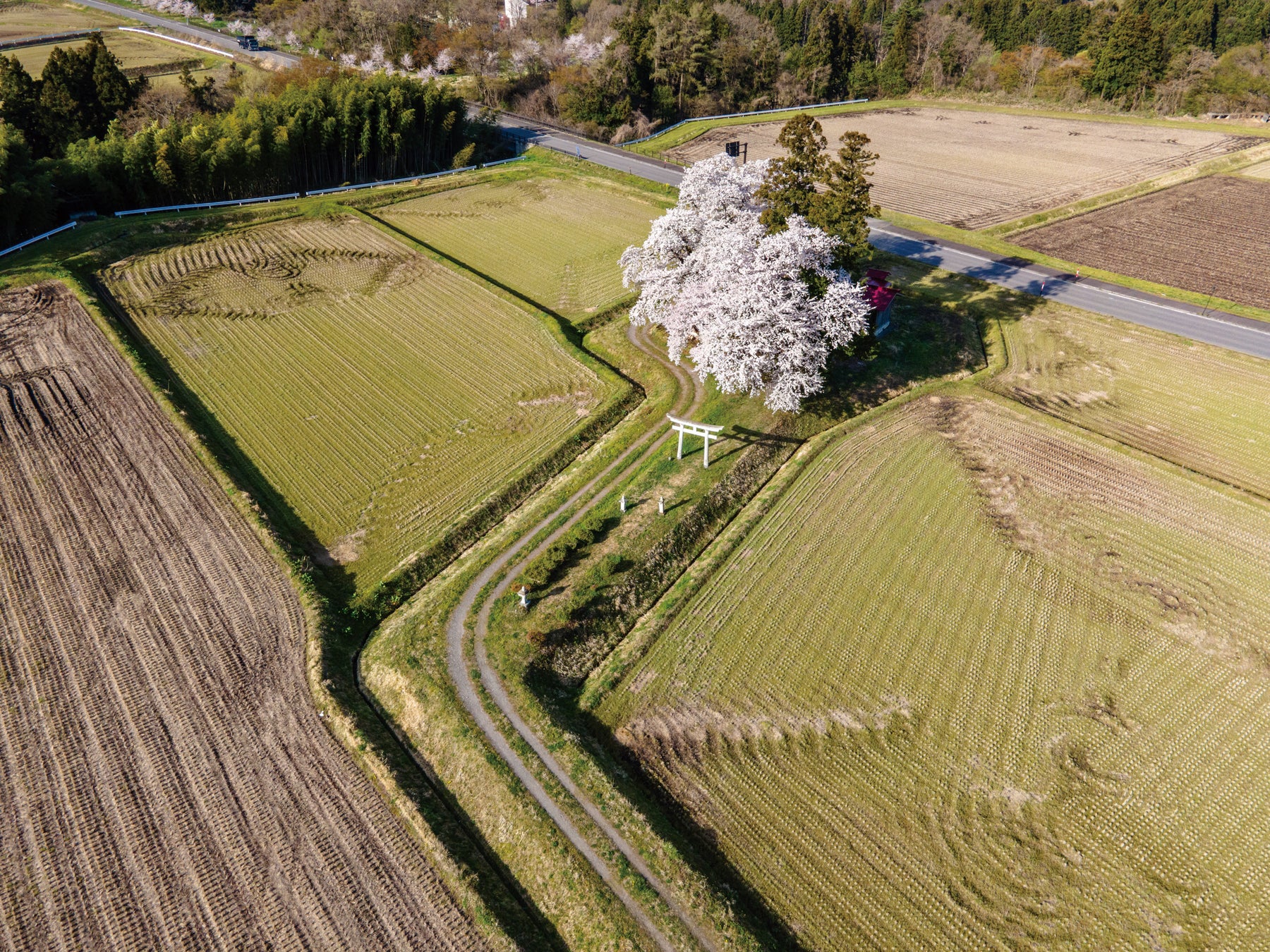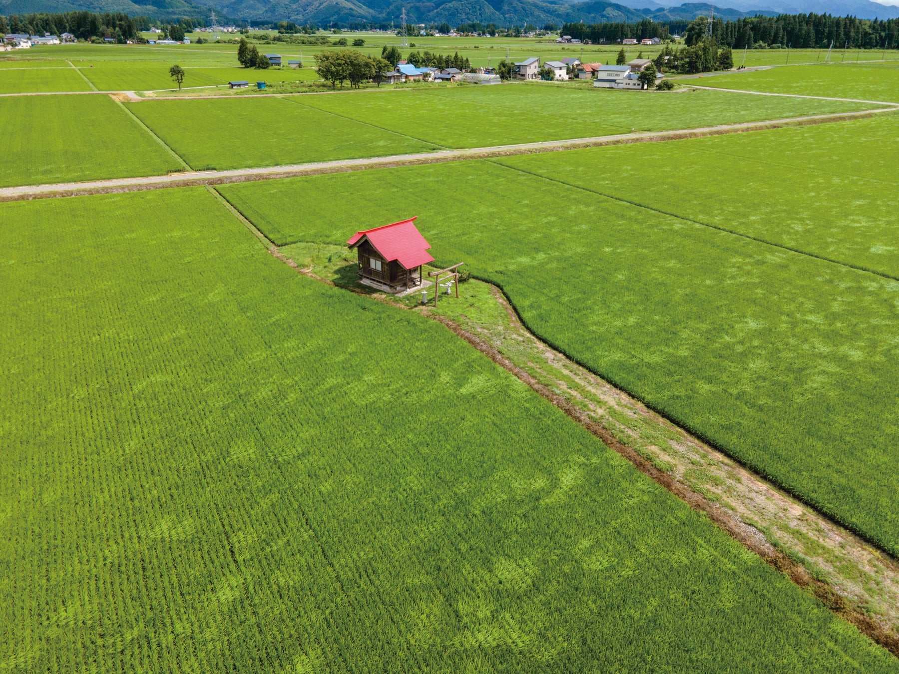 ポツンと神社のある風景、それは古来から日本人の生活や文化に密接に根付いていた田んぼと神社の結びつきによって生まれたものであり、まさに日本人の心の原風景とも呼べる郷愁と憧憬の風景だ。