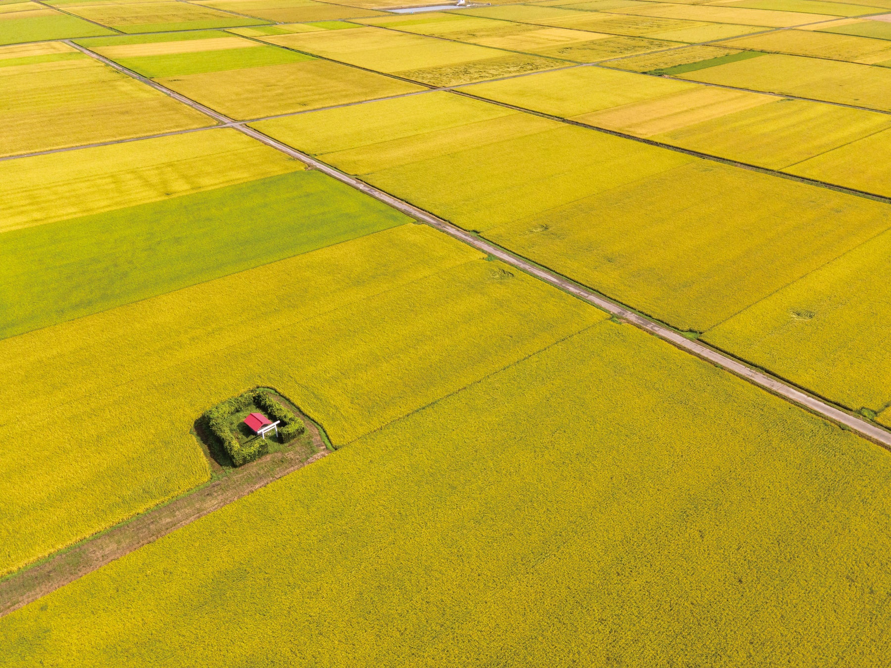 田んぼのまん中にポツンとたたずむ小さな神社を見かけたことはないだろうか。