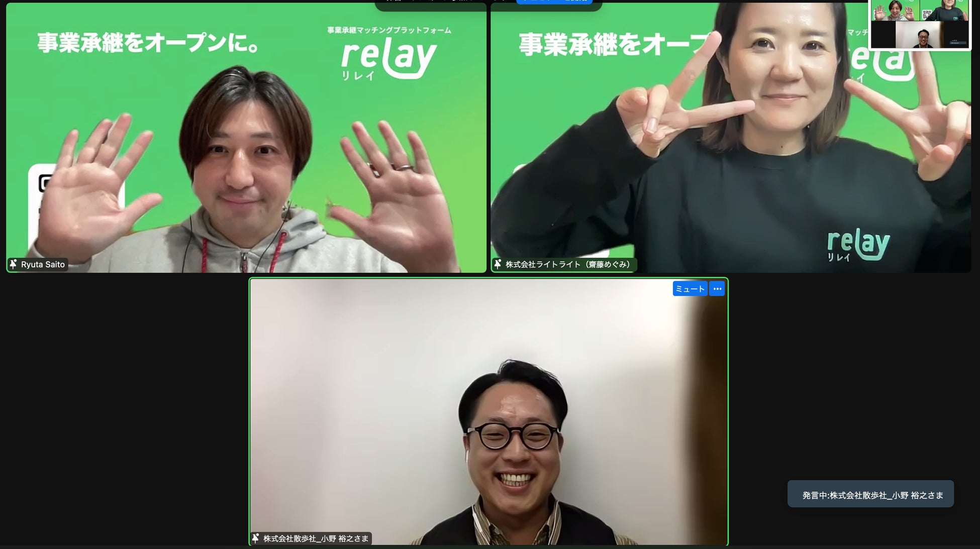 2023年12月4日(月)には初のコミュニティイベントとしてオンライントークイベント「relays session(リレイズ・セッション)#001」を開催。コミュニティメンバーでもあり事業譲渡経験者でもある株式会社散歩社 代表取締役 小野裕之様とライトライト代表取締役 齋藤隆太とのトークセッションが行われました。
