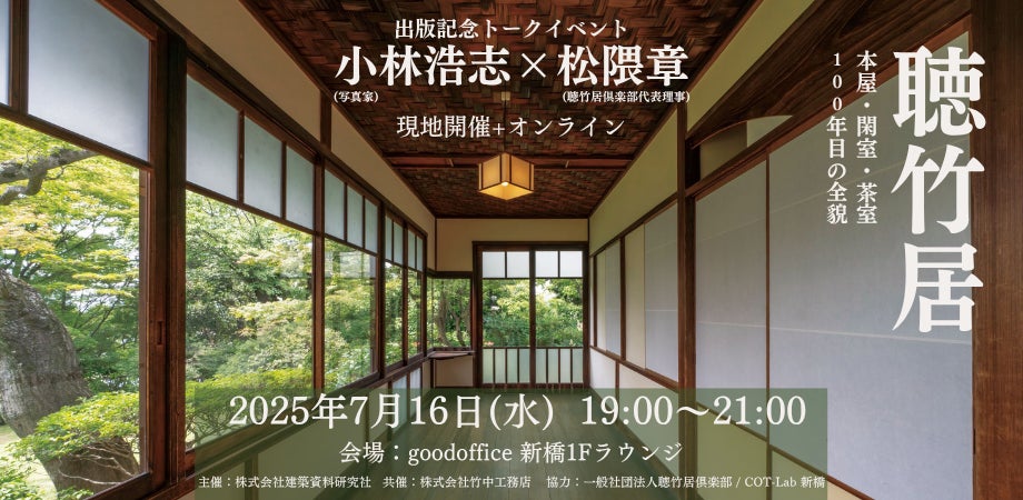 建築・住宅・インテリア・資格等の専門書を発行する株式会社建築資料研究社(所在地:東京都豊島区、代表取締役社長:馬場栄一)は、書籍『聴竹居——本屋・閑室・茶室 100年目の全貌』(小林浩志・著、松隈章・監修)を刊行し、2025年6月11日に全国書店・オンライン書店で発売いたしました。