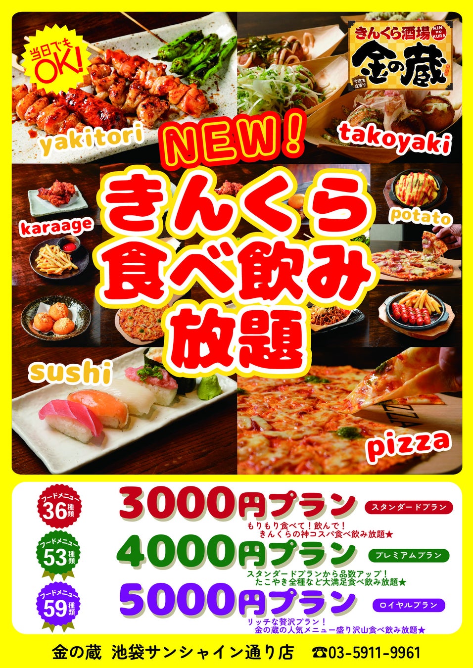 『金の蔵 池袋サンシャイン通り店』にて、大好評の「食べ飲み放題」にさらに豪華な新プランが追加