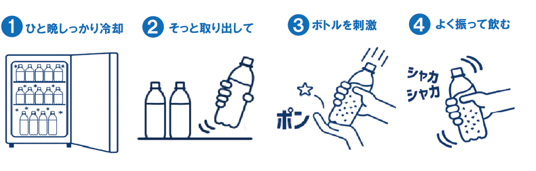 ①市販のペットボトル飲料をひと晩入れておくだけで、取り出してすぐに飲めるアイススラリーが作成可能