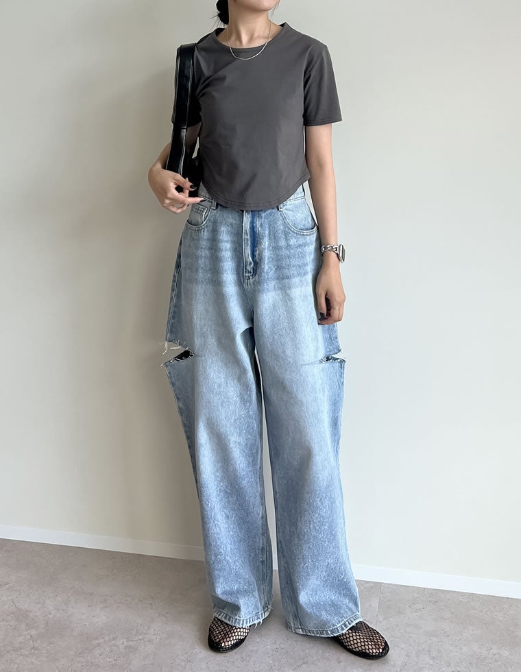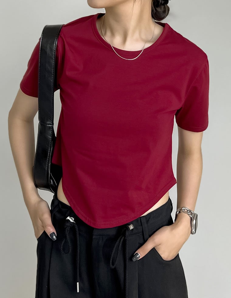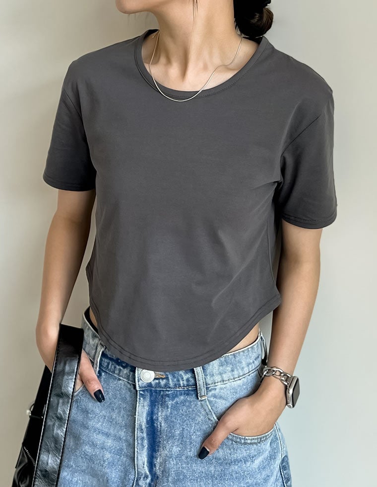 クロップド丈&ハイレグヘムデザインがトレンドライクなTシャツ