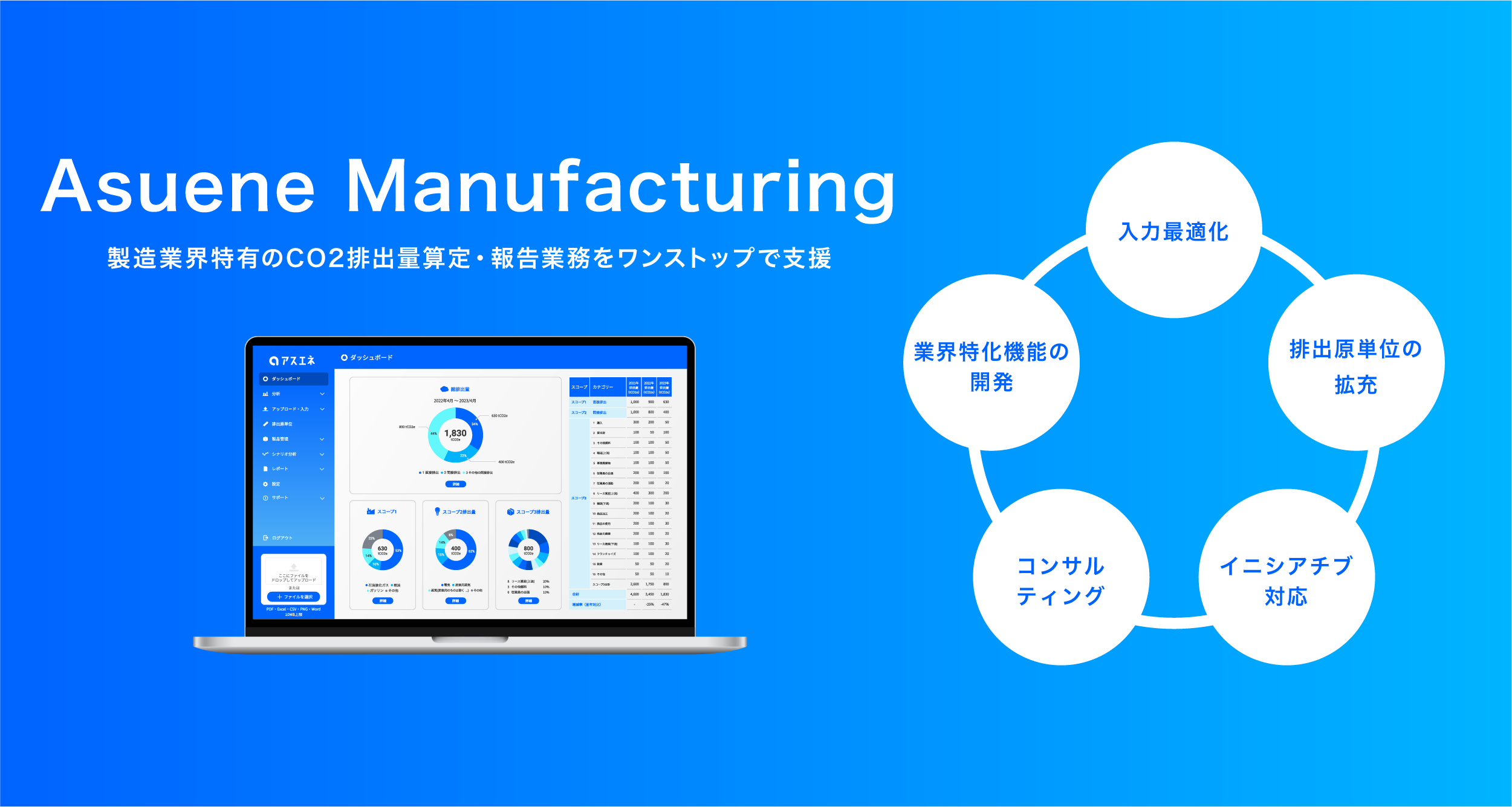 CO2排出量見える化・削減クラウド「アスエネ」、製造業界向けサービス「Asuene Manufacturing」を提供開始