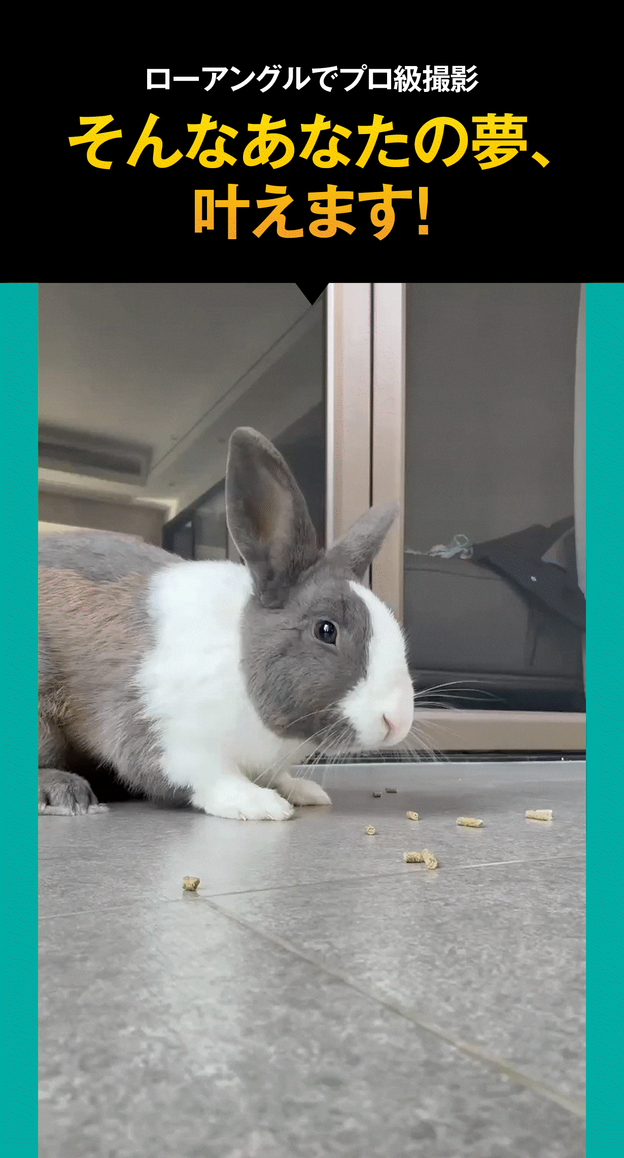 これまでひと手間が必要だったローアングルや平置き撮影を、誰でも手軽に実現。赤ちゃんやペットと同じ目線の映像、低い位置からの迫力あるカットなど、表現の幅が一気に広がります。